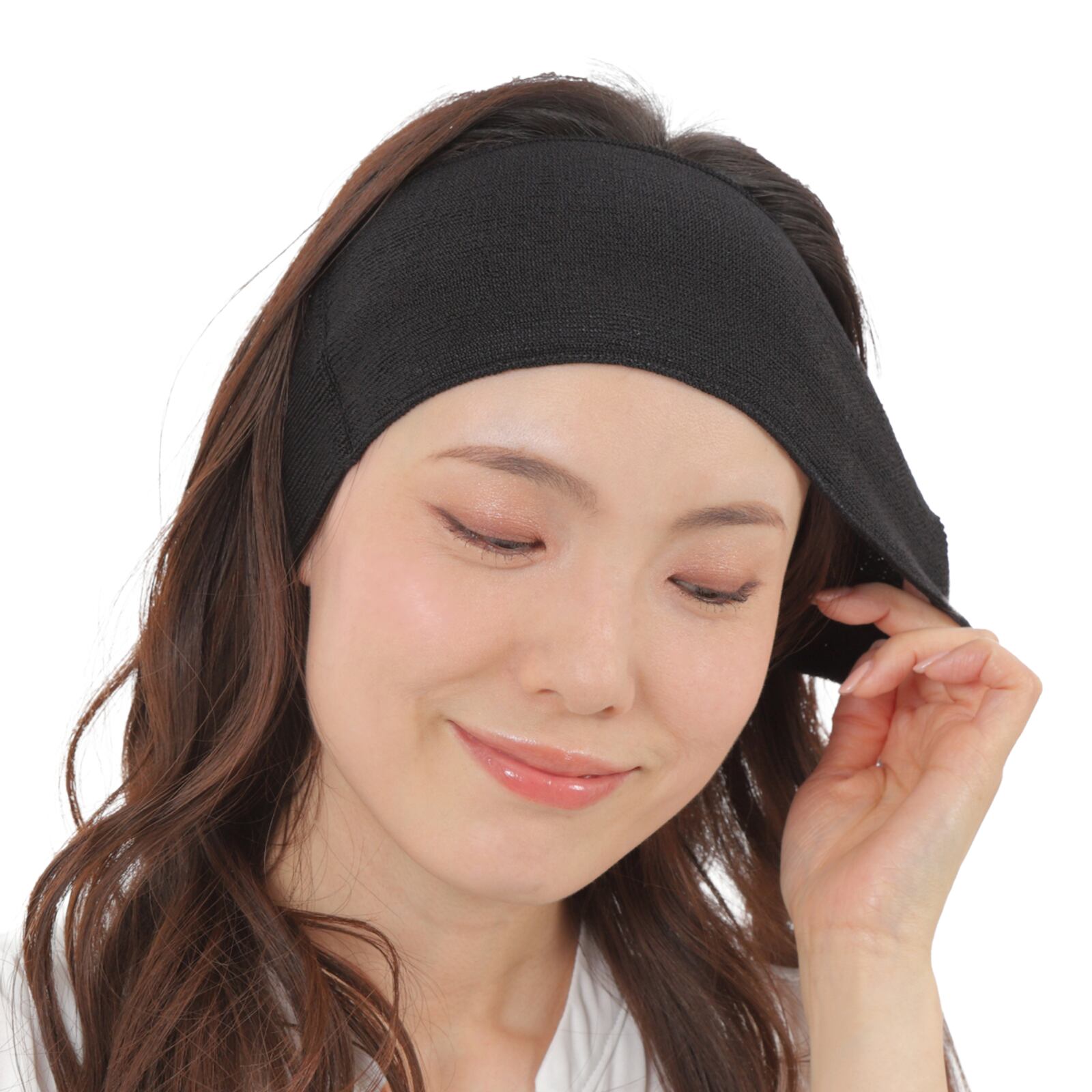 紐がないタイプなので頭や耳の痛みを心配する必要がありません。すべて伸縮糸入りの天然繊維シルクを100%使っているので、柔らかく頭や耳を覆い、痛くならず快適です。