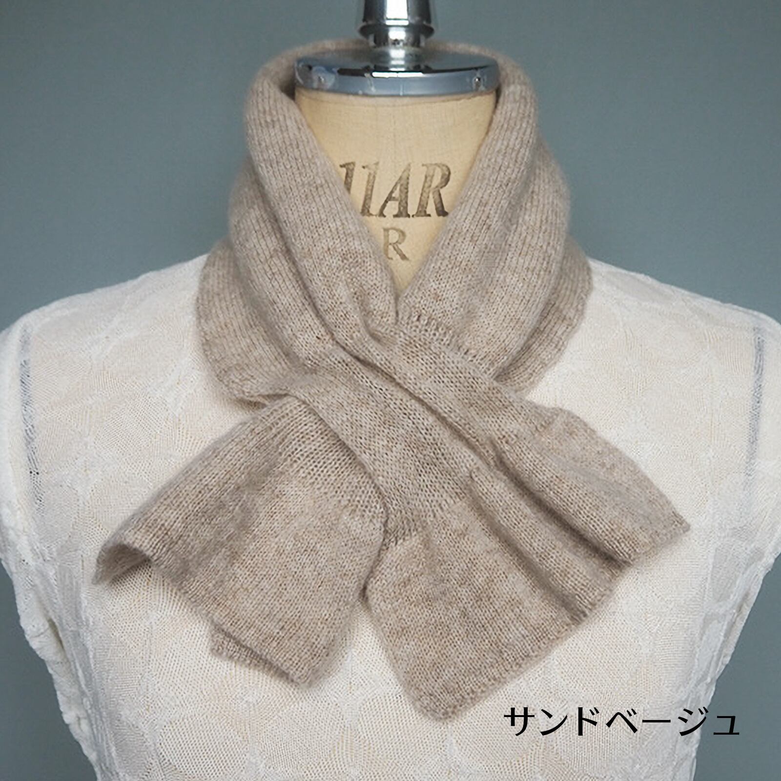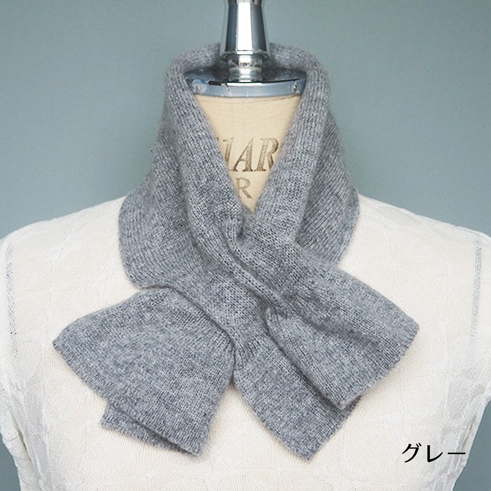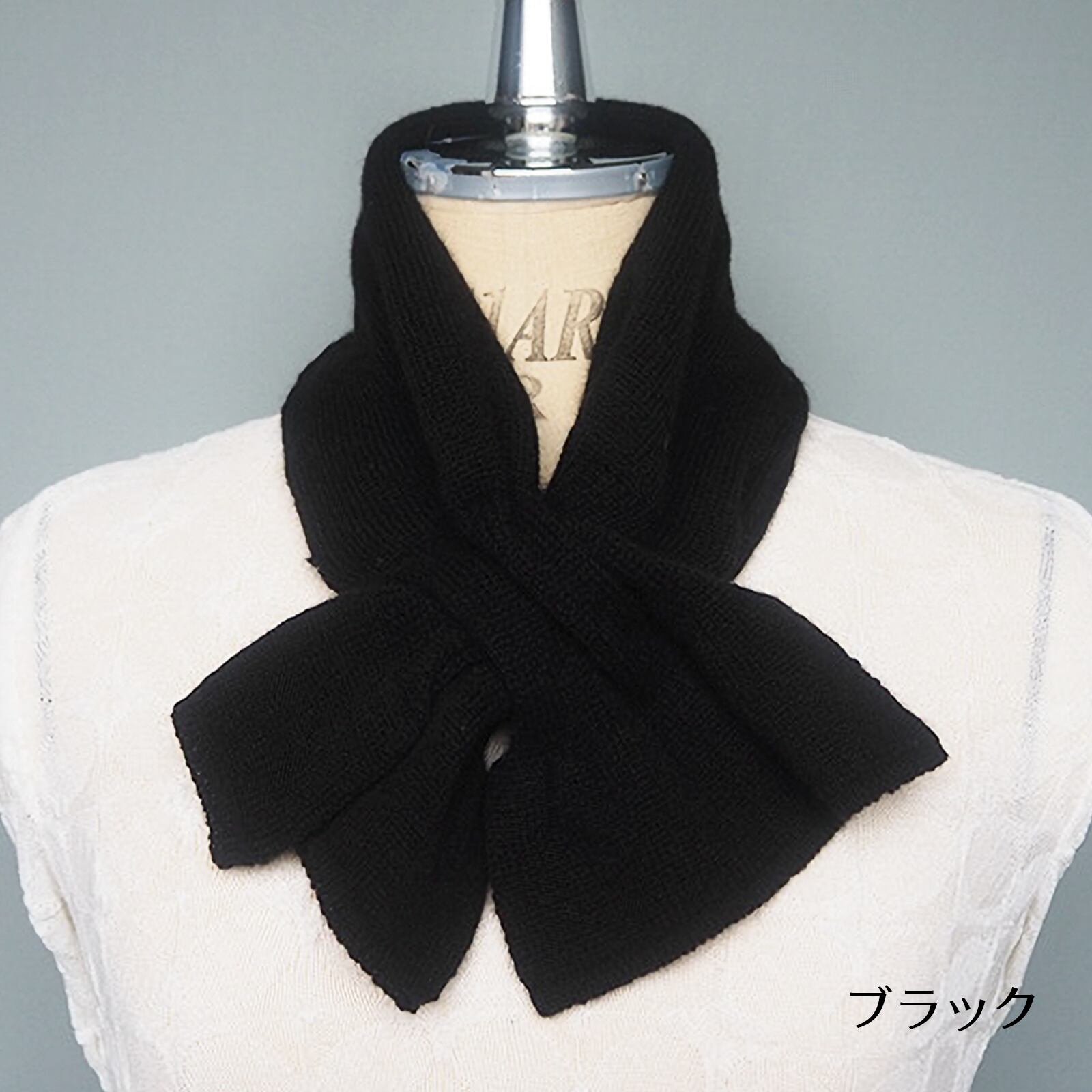 通し穴に通すだけで簡単にかわいいリボン型になるマフラー。首元や胸元がさみしい時にも、これ1枚でおしゃれと防寒が完成。