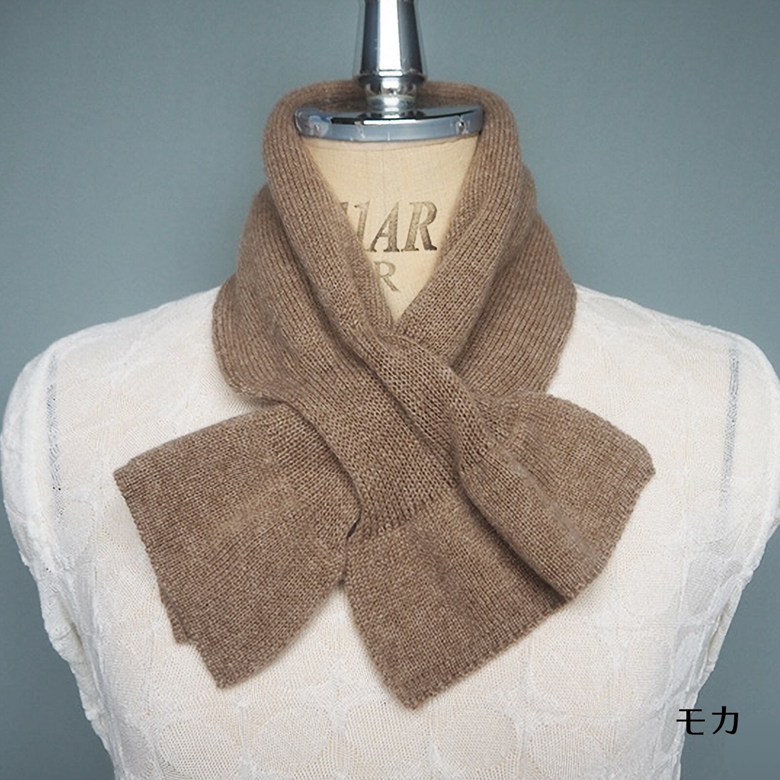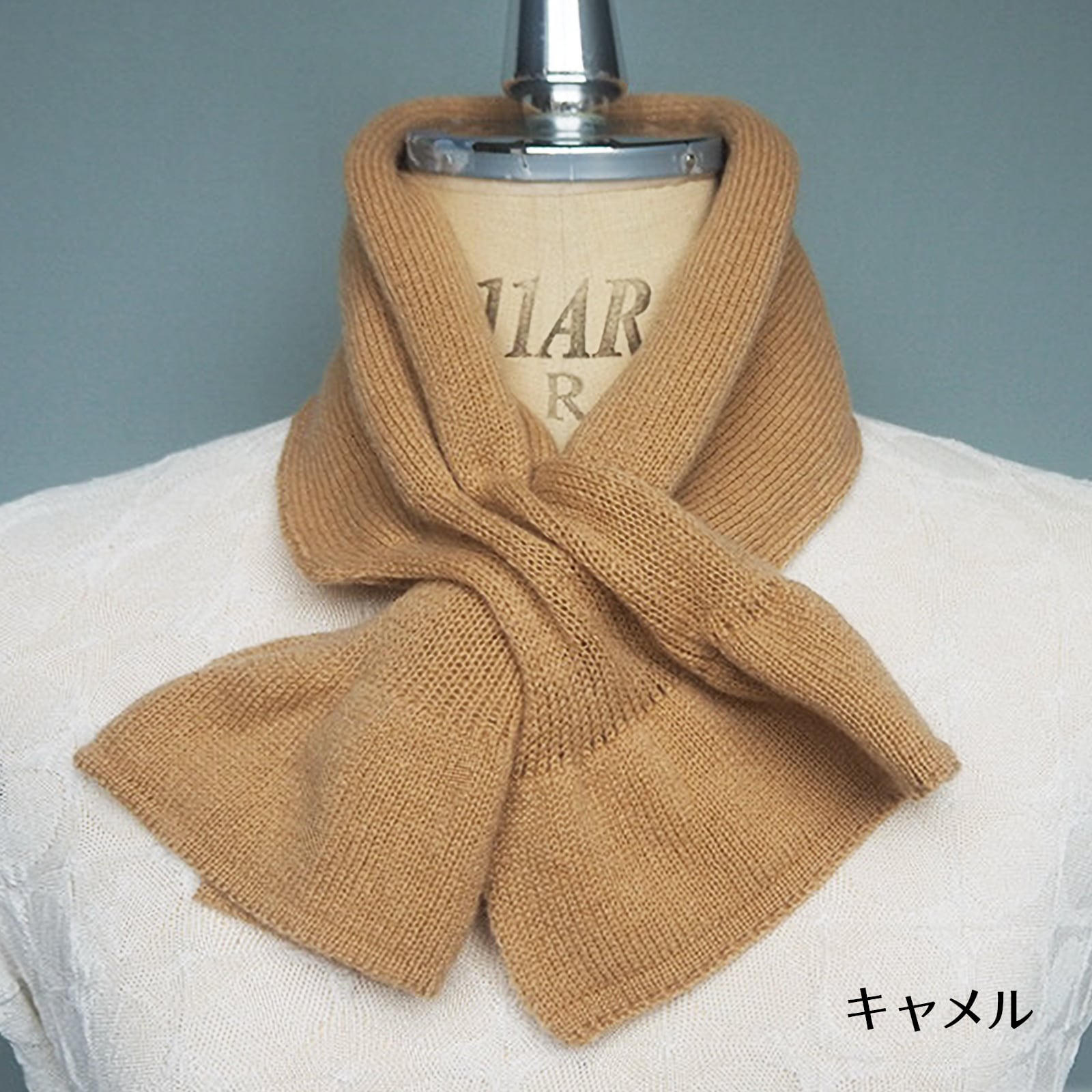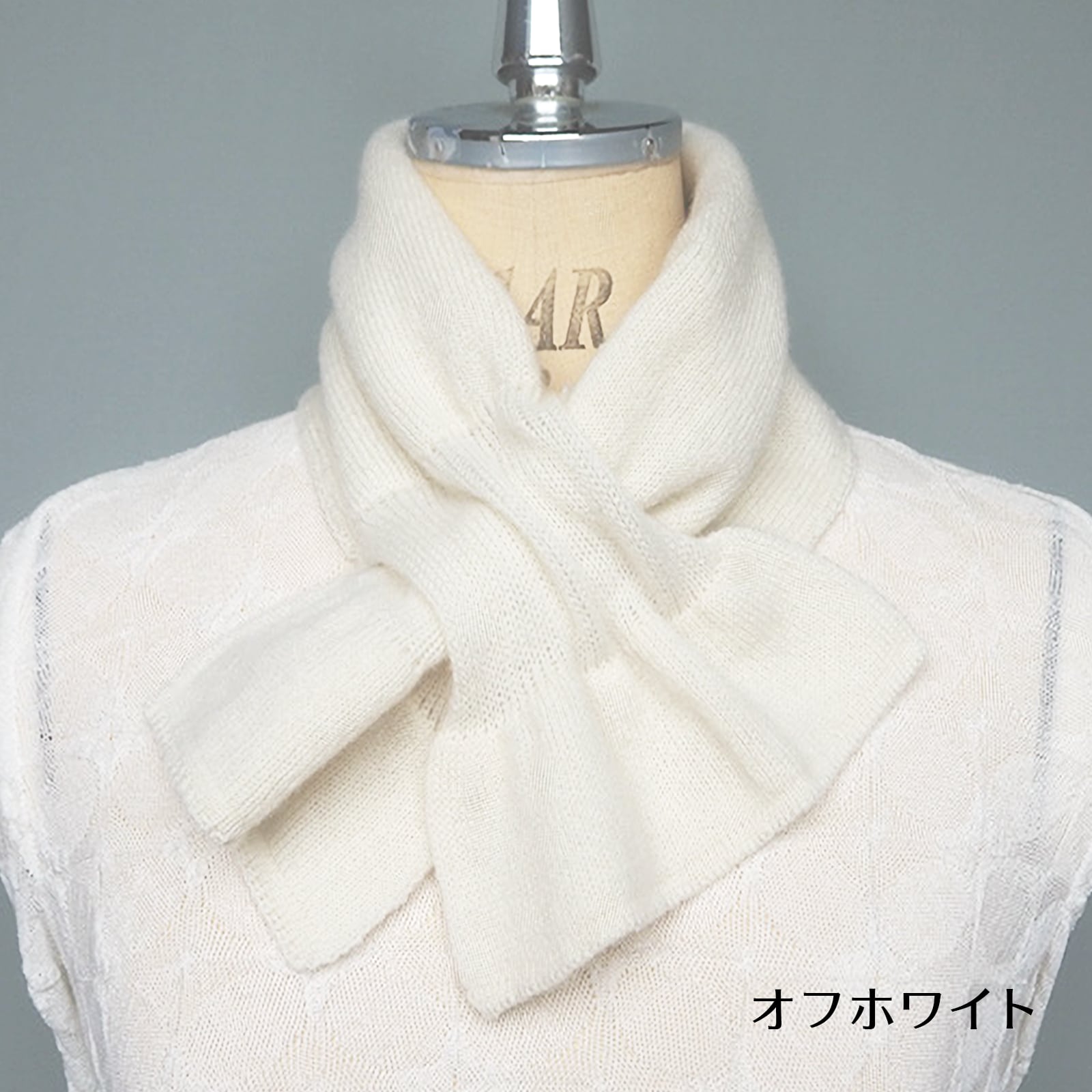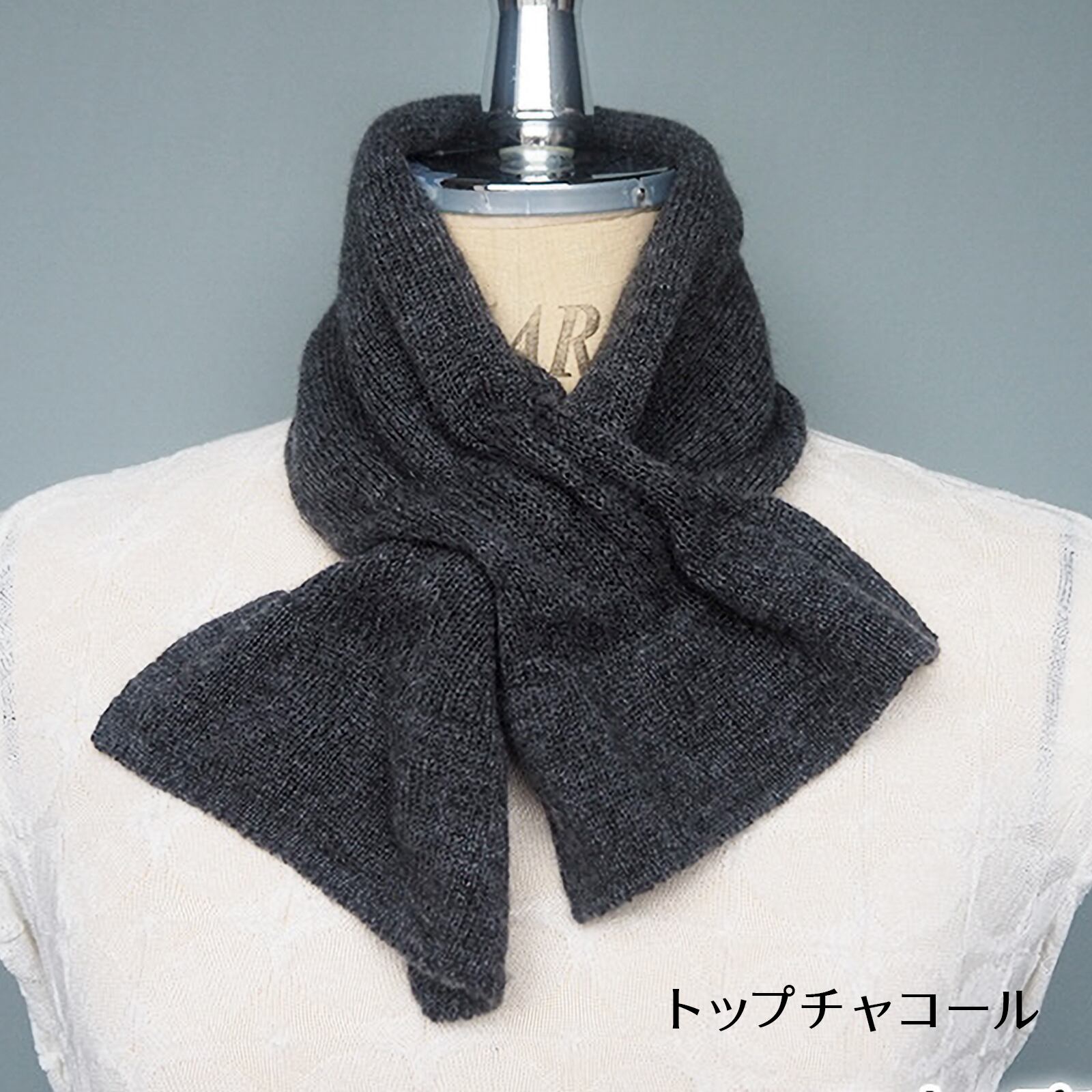 通し穴に通すだけで簡単にかわいいリボン型になるマフラー。首元や胸元がさみしい時にも、これ1枚でおしゃれと防寒が完成。